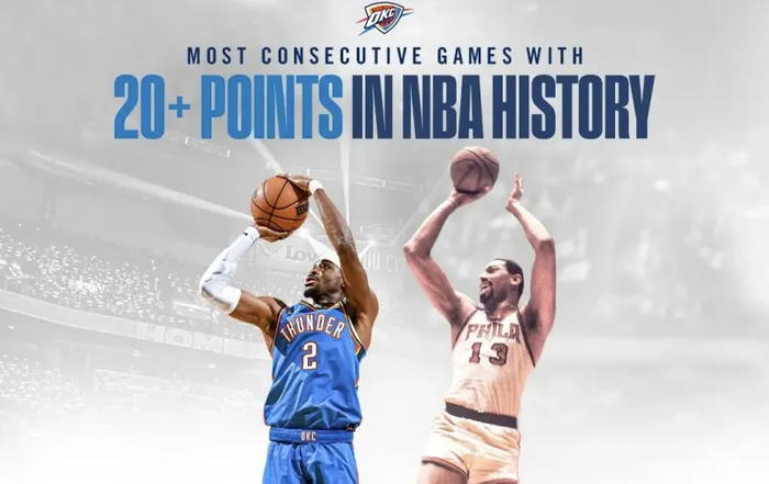 亚历山大连续得分20+场次达128场 创历史纪录