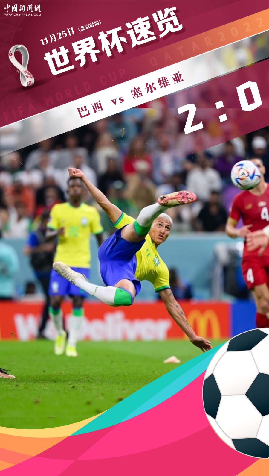 2022年卡塔尔世界杯小组赛首轮迎来焦点战,巴西队在卢赛尔体育场迎战塞尔维亚。凭借里查利松的两粒精彩进球,桑巴军团以2:0取得开门红。这场胜利不仅为巴西队奠定了小组出线基础...