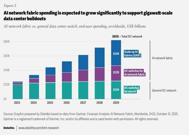 然而,由于传统的铜缆以太网设计无法满足人工智能工作负载的需求(人工智能工作负载会在GPU之间产生海量的东西向流量),光互连(包括CPO和线性可插拔光模块,即LPO)预计将在2026年得到更广泛的应用。